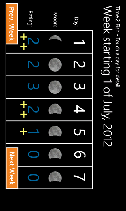 - A screen detailing the date, moon phase, and rating will be automatically generated for the next 7 days