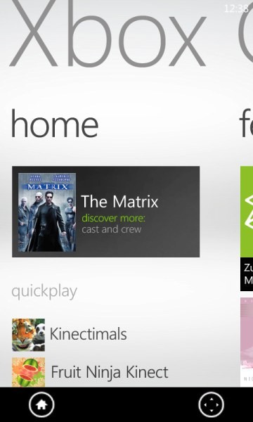 The Companion app allows WP7 users access to search the Xbox catalog of games and movies straight from their WP7 handset. Users will also receive second screen information on what console is currently being played, access to view friend activity, or act as a remote control.Â